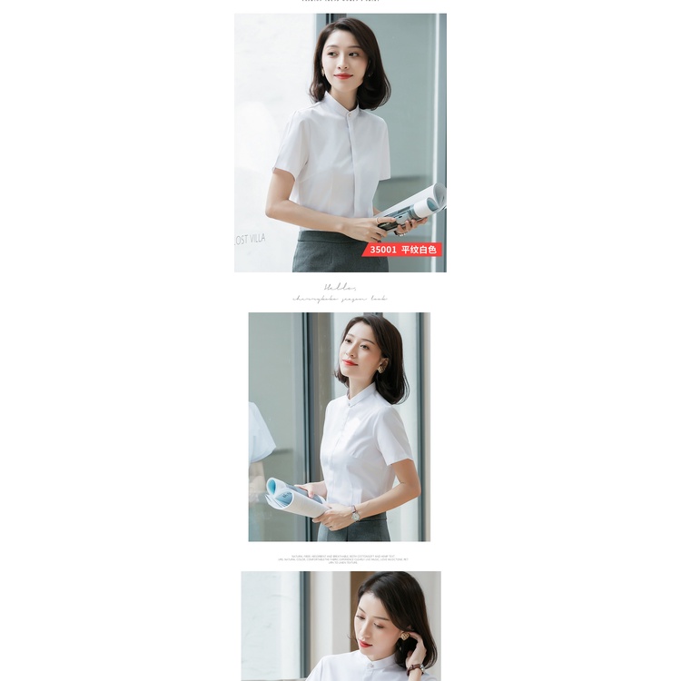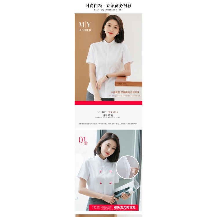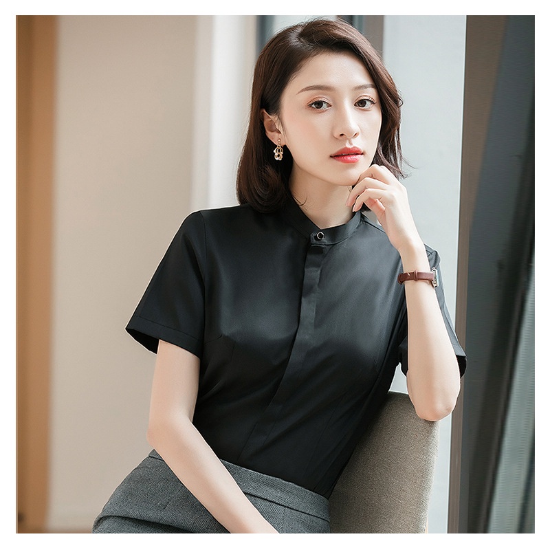 [Ready Stock Free Shipping] Summer Korean Version Solid Color Stand-Up Collar Cotton Temperament Commuter Short-Sleeved Single-Breas