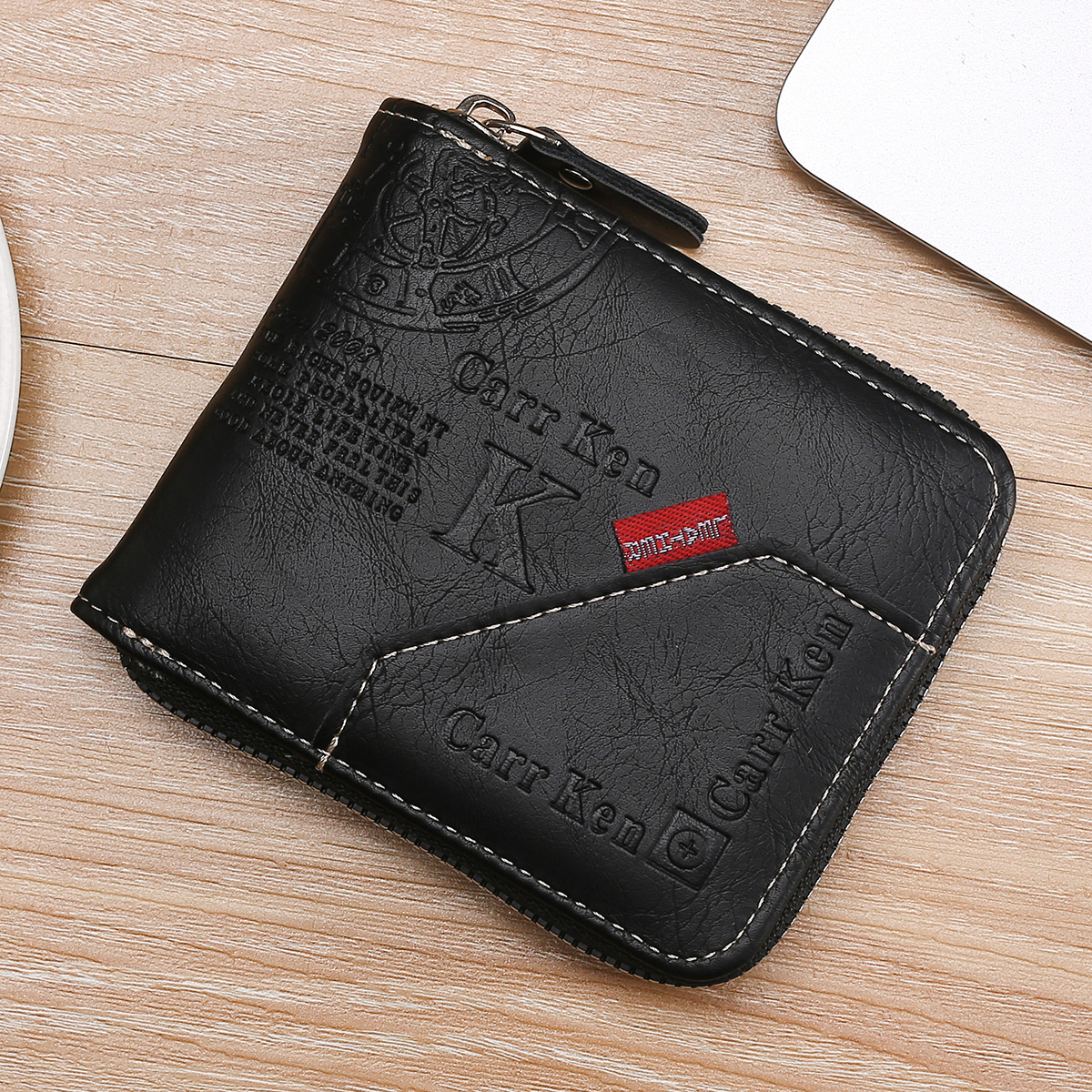 1 Piece Men's Business Zipper Short Wallet Youth Fashion Stitching Multifunctional Wallet Coin Pocket Coin Purse Boys Gifts