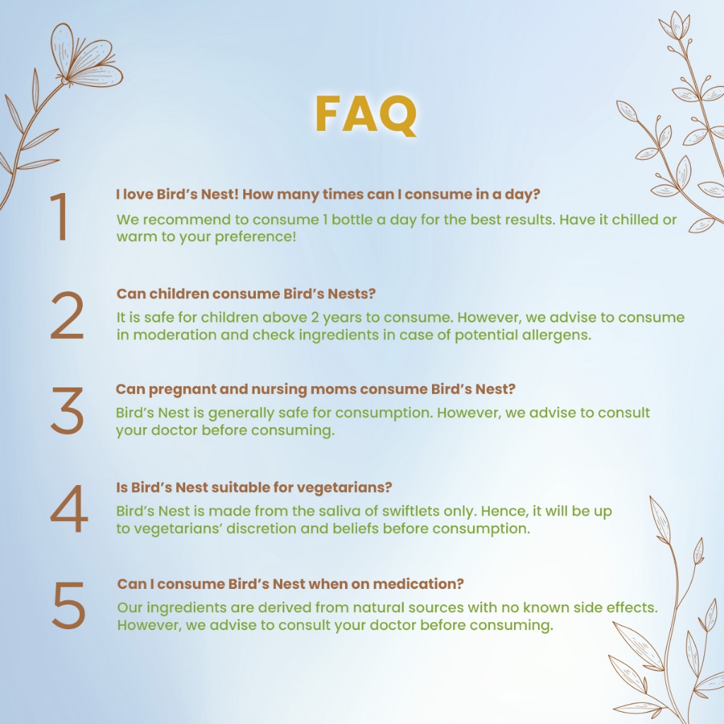 Suitability:all ages Performance:nice to drink It is very hard to find a drink that is both nutritious and delicious. New moon bird nest really is an exception! Not only healthy, it is very nice to drink . Soothing to our throat and stomach and it is less sweet too. The delivery staff is very well mannered!