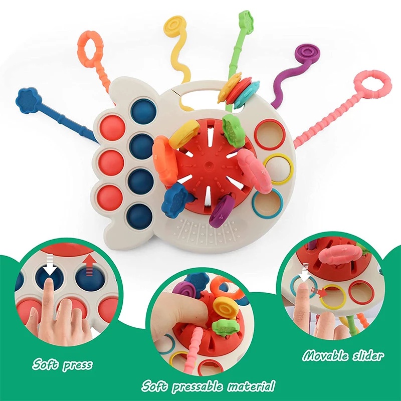 3 In 1 Baby Montessori Pull String Sensory Toys 18M+ Silicone Teething Activity Toy for Toddler Finger Grasp Training