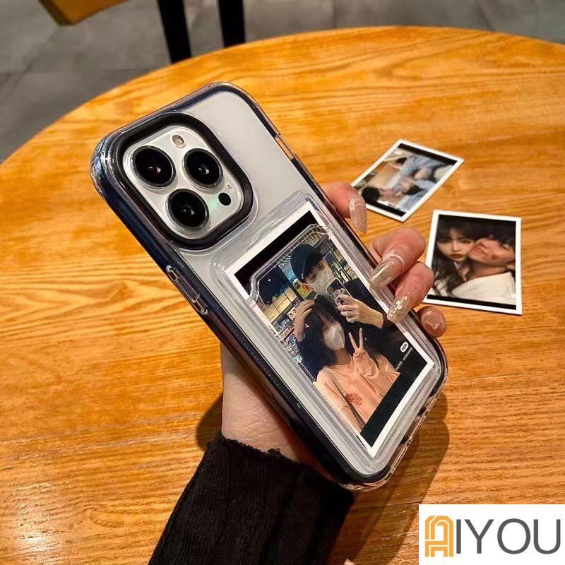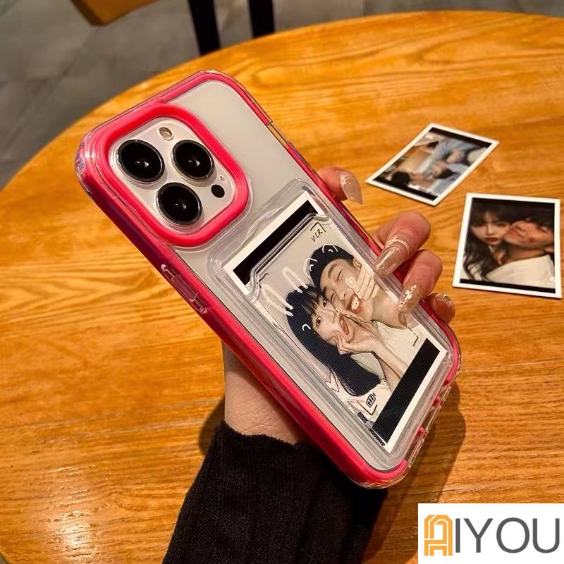 3 In 1 Luxury Candy Color Card Holder Removable Frame Clear Phone Case for IPhone 14 pro max 13 12 11 Pro Max X Xs Max Xr 8 7 Plus