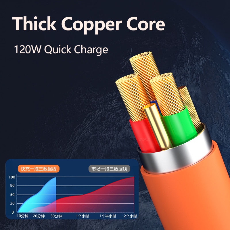 3 IN 1 Zinc Alloy Charging Cable 120W 6A Super Fast Charger