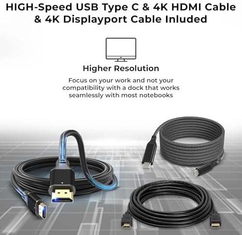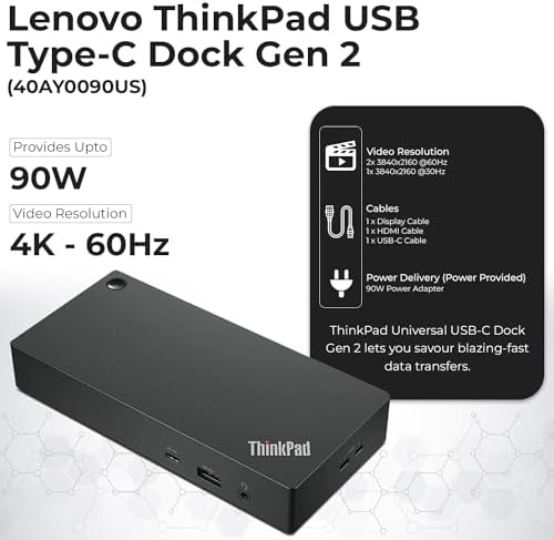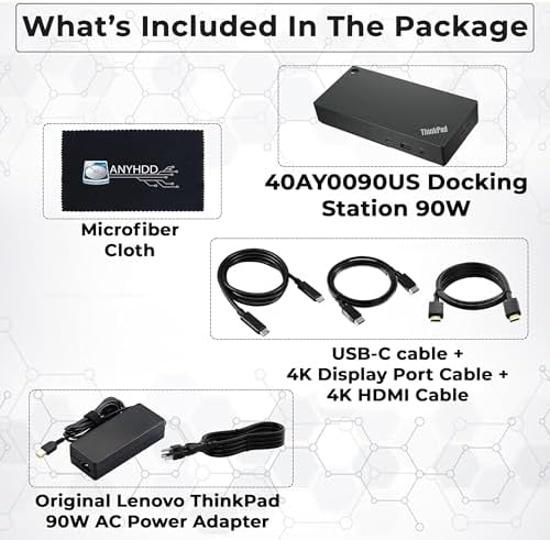40AY0090US Lenovo Thinkpad Docking Station Dual Monitor Bundle - Supports 4K Display, Thinkpad Dock with AC Adapter + 4K HDMI Cable + 4K DisplayPort Cable + USB C Cable + Microfiber Cloth