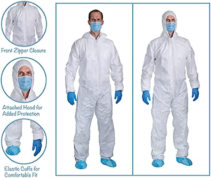 • Provides full body protection. With elastic hood, elastic wrists and elastic ankles, the coveralls provide a snug fit, and reliable protection from harmful particles.