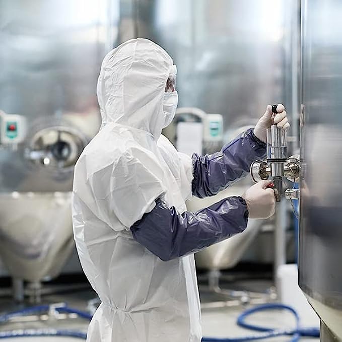 • Protective PTFE micro-film material over Spunbond Breathable PP. This coverall provides enhanced durability, breathability and comfort to the workers.