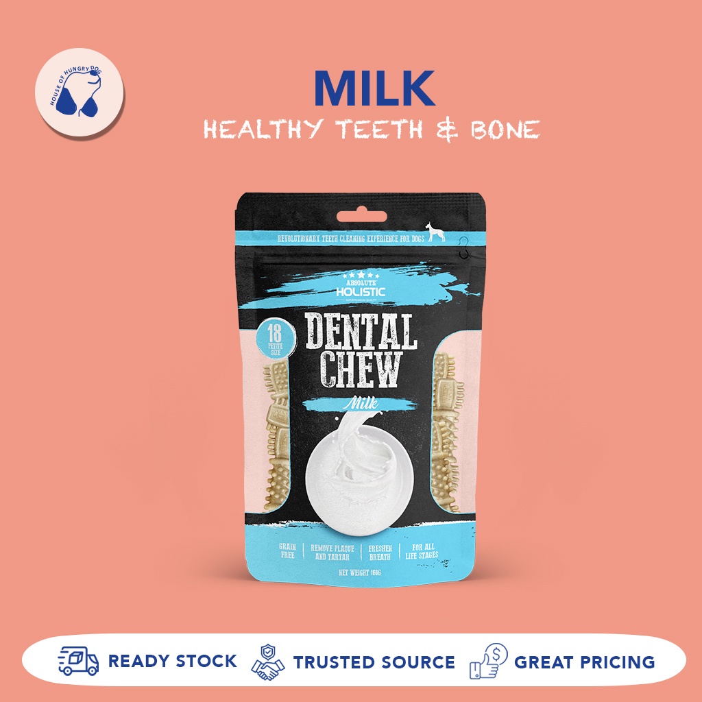 Suitability:great Quality:great Performance:great Doggies loves holistic dental chews a lot. And all the flavours are great! Delivery fast n items well pack. Will purchase again.