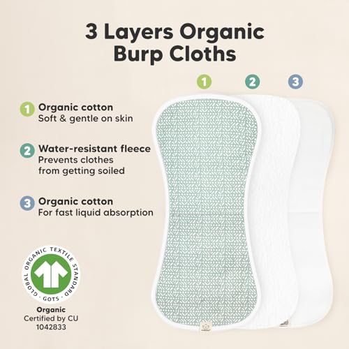 Organic Burp Cloths Baby Boy & Girl - 5-Pack Super Absorbent Cotton Burping Cloths for Babies, Soft & Plush Newborn Spit Up Rags, Infant Towels for Milk Spit Up, Unisex, Large 21" x 10" (Nordic)
