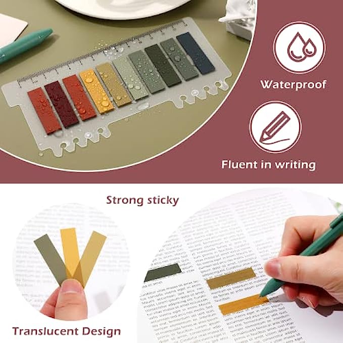 • [Premium Quality Material]: The sticky notes tabs is made of reliable quality PET material and special adhesive, which is waterproof, odorless and fluent in writing. Aslo the translucent adhesive part won't cover up any information .