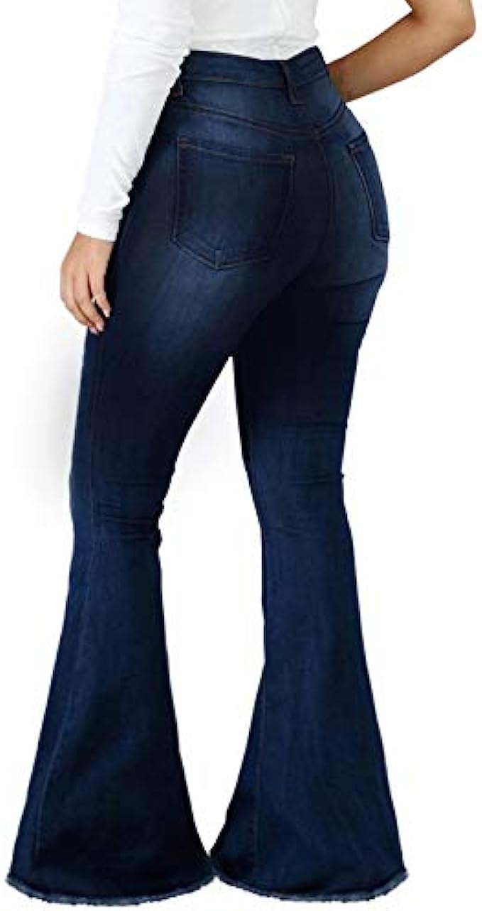 95% Polyester, 5% Spandex Imported Zipper closure Elastic Waist with two pockets at back Bell bottom jeans for women Slim fit Wide flared and frayed hem to complete tretchy and fitted feel All match with blouse,tank top,crop top,shirt,sweater,etc It is comfortable and versatile to wear and suits for most occasions