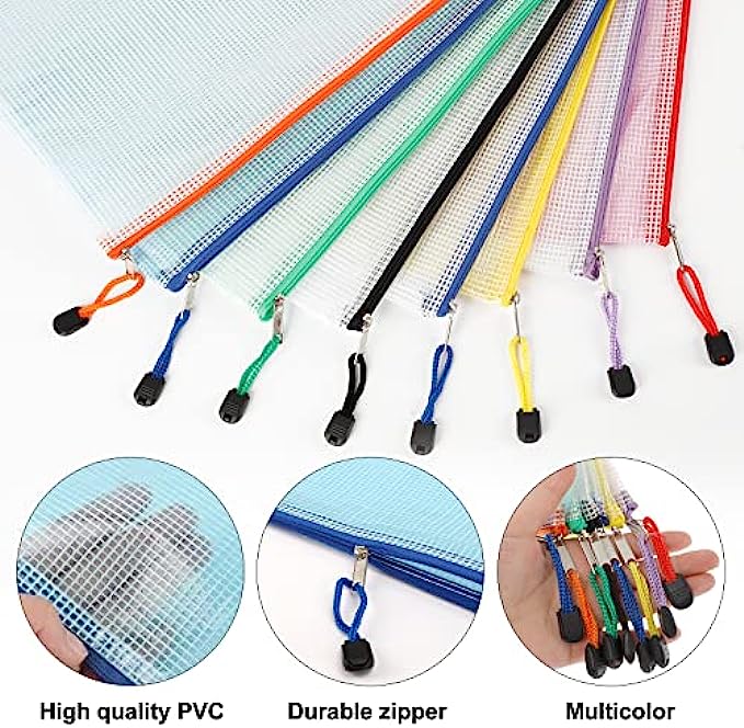 EOOUT 16pcs Mesh Zipper Pouch Document Bag, Zipper Bags for Organizing, Waterproof Zip File Bags, Letter Size, A4 Size, for School Office Supplies, Storage Bags, 8 Colors