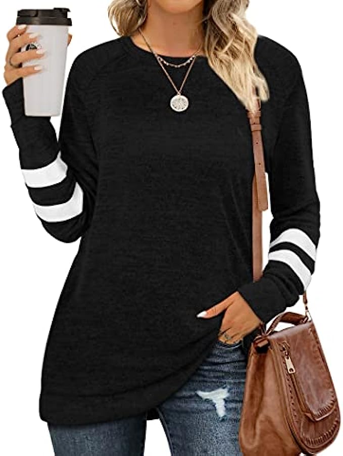 Geifa Sweatshirts for Women Crewneck Color Block Sweaters Long Sleeve Tunic Tops