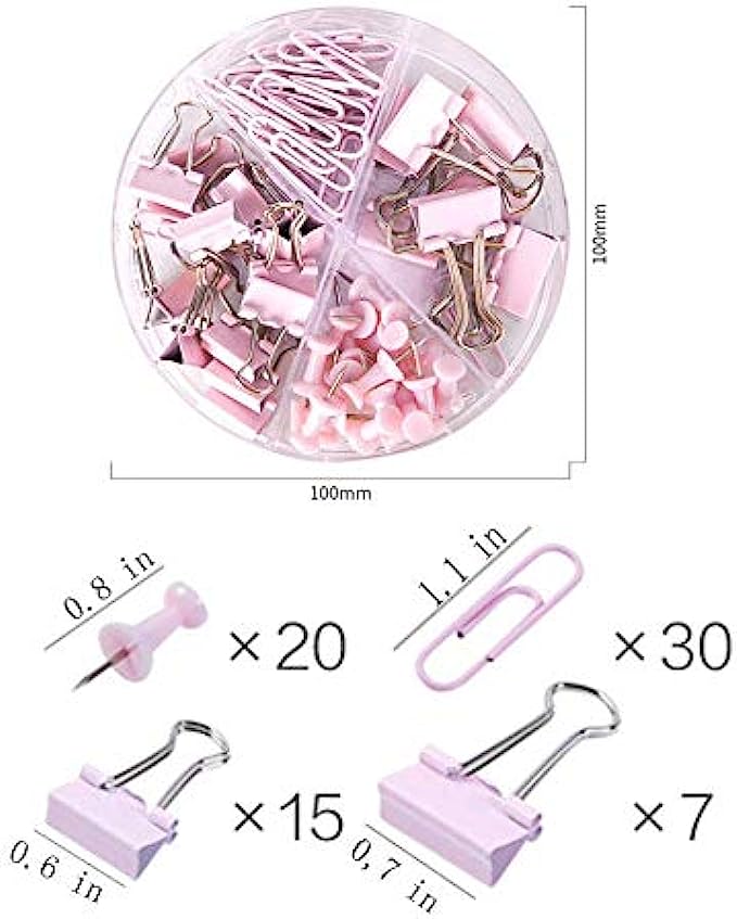 • MULTI-PURPOSE: Large medium assorted binder clips and paperclips are ideal for holding papers, notes, photo, picture, sticky, receipts, parchment, bookmark, files, ticket, other small items etc. Push Pin or tacks Use to pin important messages on bulletin board, cork board, travel, map, wall, foam board, marking locations and more.