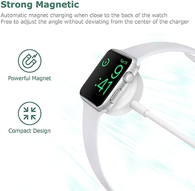 • 【Fast Efficient Charger】This watch charger offers original fast charging speed for your watch series 1/2/3 in 2 hours and 3 hours for series 4/5/6/7. Note: Please take off the watch case and use a 5V/1A adapter or original adapter for better charging.