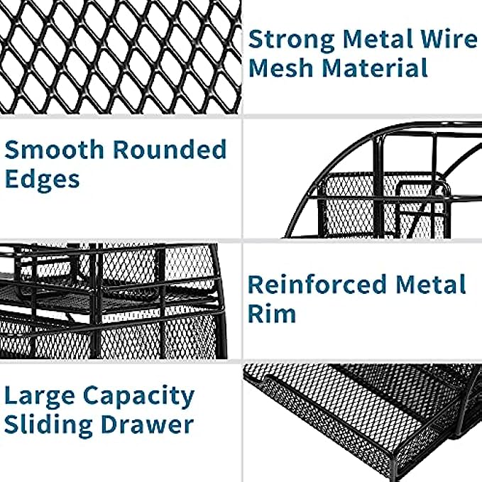 • ✏️Office Organizers for Desk: The desktop organizer uses powder coating and electroplating technology, which is wear-resistant, anti-oxidation, and long-lasting. Rounded metal edges and trims protect your desk and make it look great.
