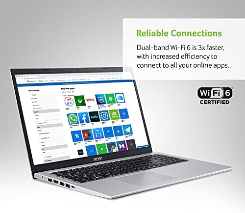 Aspire 5 A515-56-347N Slim Laptop - 15.6" Full HD IPS Display - 11th Gen Intel i3-1115G4 Dual Core Processor - 8GB DDR4 - 128GB NVMe SSD - WiFi 6 - Amazon Alexa - Windows 11 Home in S Mode,Silver