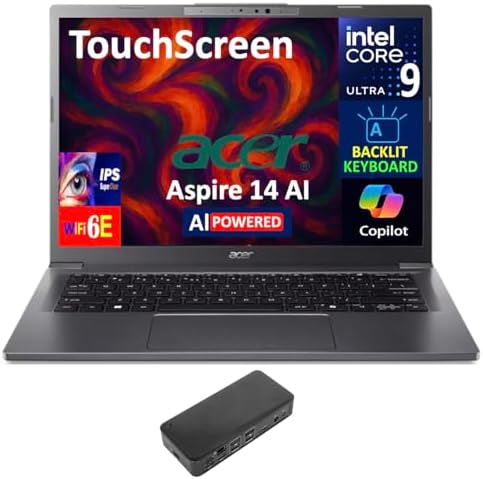 Aspire Creator Laptop 14.0" Touchscreen IPS WUXGA Display (Intel Ultra 9-288V, 32GB LPDDR5X, 2TB PCIe SSD, Intel Arc 140V, Backlit KB, 2 Thunderbolt 4, WiFi 6E, Webcam, Win 11 Pro) w/USB-C Dock