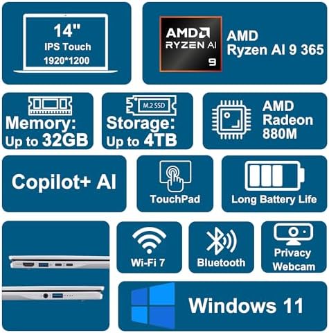 Swift 14 AI Portable Laptop 14" WUXGA Matte Touchscreen AMD 10-core Ryzen AI 9 365 (Up to 50 NPU Tops - Up to 73 GPU Tops) 32GB RAM 4TB SSD for Creator Business Work Win11 ICP Hub/Copilot+ AI PC