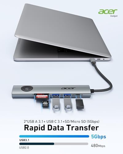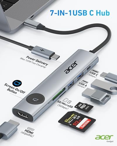 USB C to HDMI Multiport Adapter, 7 in 1 USB-C Hub with HDMI 4K@60Hz, 100W PD, 2 USB-A 3.1 and 1 USB C 3.1 with 5Gbps, SD Card Reader, Type C Dongle for MacBook Pro/air, iPad, iPhone 16/15, Grey