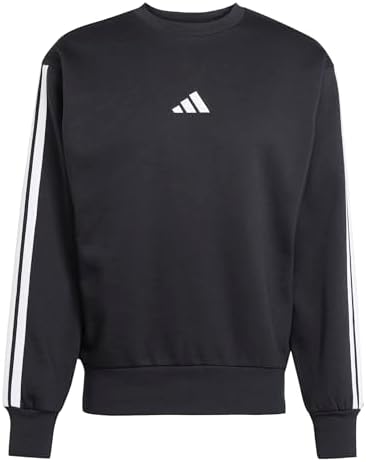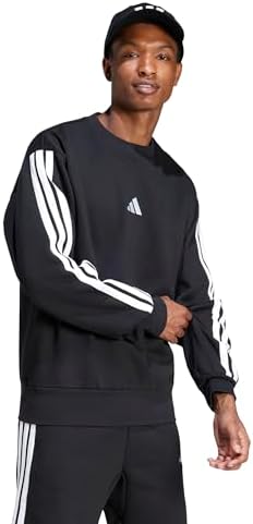 Men's Essentials 3-Stripes Fleece Sportswear Sweatshirt, Black/White, Medium