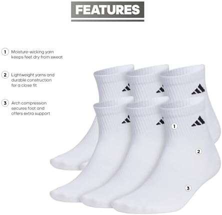 Men's Superlite Quarter Socks 6-Pack, Durable, Lightweight, Athletic Breathable with Compression Arch Support