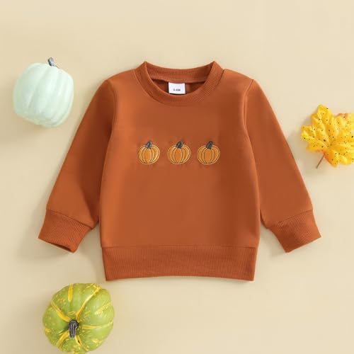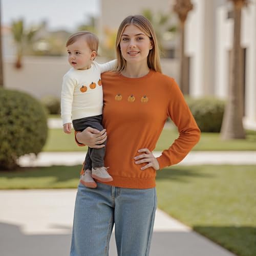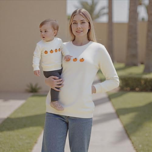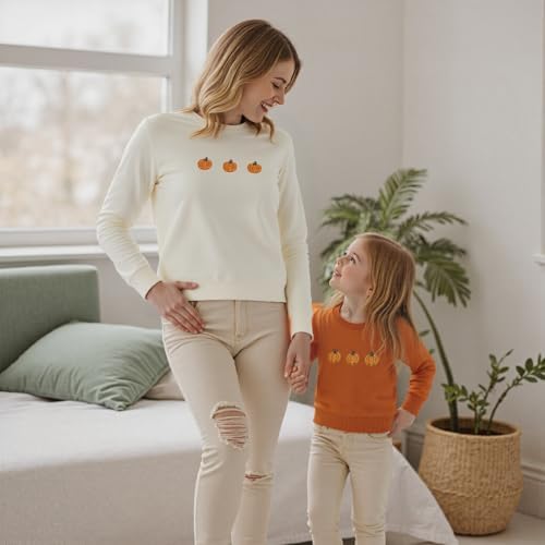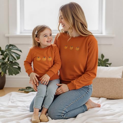 Halloween Mommy and Me Outfit Pumpkin Embroidered Long Sleeve Crewneck Sweatshirts Pullover Top