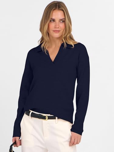 Womens Polo V Neck Long Sleeve Sweaters Lightweight Dressy Casual Business Basic Knit Pullover Top 2025 Fall Outfits