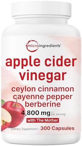 Apple Cider Vinegar with The Mother 4,800mg Per Serving, 300 Capsules | 4-in-1 ACV Complex | Ceylon Cinnamon, Cayenne Pepper, & Berberine | Immune, Digestion & Appetite Support | Non-GMO, Gluten Free