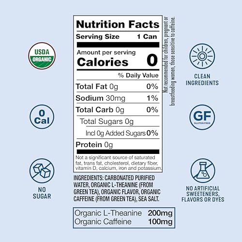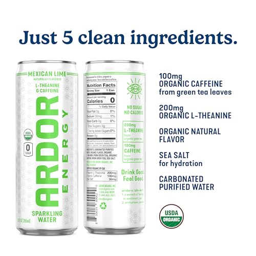 ARDOR ENERGY Sparkling Water with 100mg Natural Caffeine & 200mg L-Theanine from Organic Green Tea for Smooth Energy & Focus | Healthy Energy Drink | No Sugar, Zero Calories, Vegan, Gluten-Free | Trop