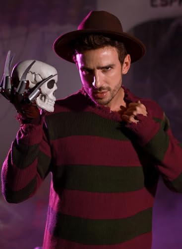 Arvilhill Men's Halloween Freddy Sweater Nightmare Costume Knitted Striped Pullover No Claws M