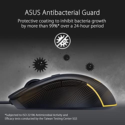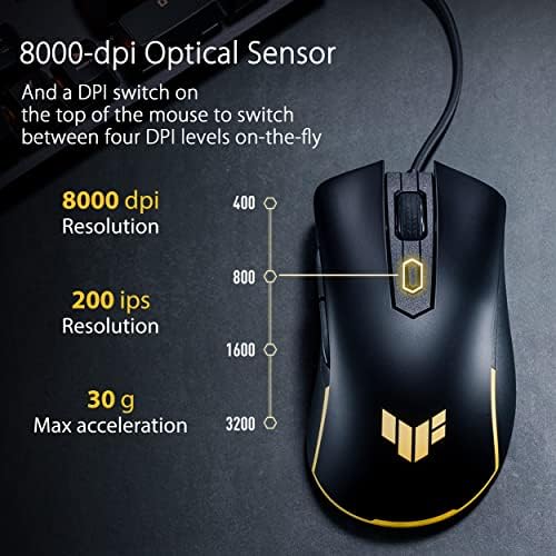 TUF Gaming M3 Gen II Gaming Mouse, Wired, 59g Lightweight, IP56 dust & Water Resistance, Antibacterial Guard, 8K DPI Optical Sensor, 6 Programmable Buttons, Teflon Mouse feet, Black