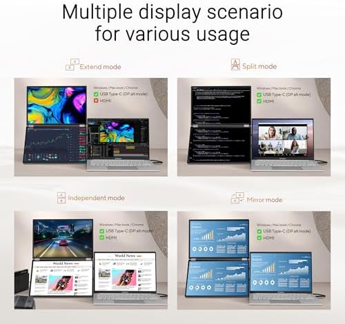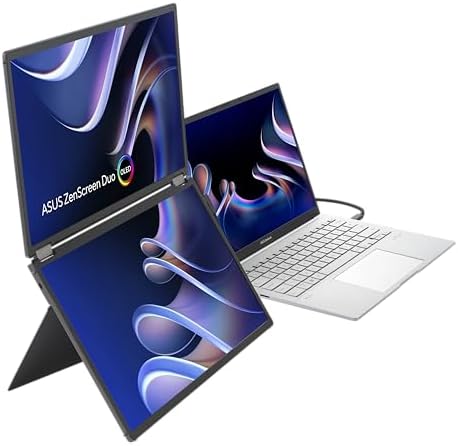 ZenScreen Duo OLED 360° Foldable Portable Monitor (MQ149CD) - Dual 14-inch, 16:10, 1920x1200, DisplayHDR400 True Black, 100% DCI-P3, Delta<2, Dual USB-C, Mini-HDMI, Kickstand, 3 yr Warranty