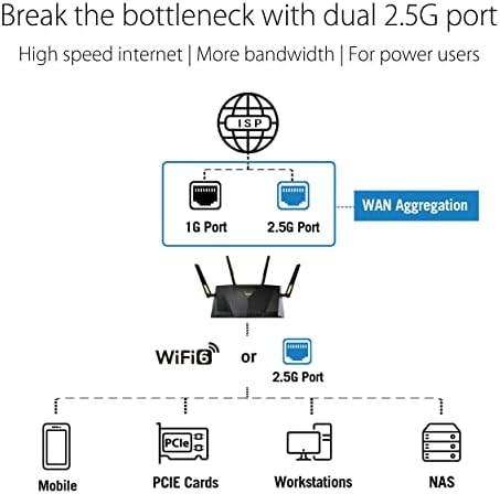 RT-AX88U PRO AX6000 Dual Band WiFi 6 Router, WPA3, Parental Control, Adaptive QoS, Port Forwarding, WAN aggregation, lifetime internet security and AiMesh support, Dual 2.5G Port