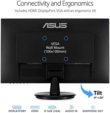 VA24DQ 23.8” Monitor, 1080P Full HD, 75Hz, IPS, Adaptive-Sync/FreeSync, Eye Care, HDMI DisplayPort VGA, Frameless, VESA Wall Mountable ,BLACK