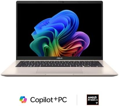 Vivobook 14 Laptop, Copilot+ PC, 14” WUXGA 60Hz Display, AMD Ryzen AI 7 350 with XDNA NPU, AMD Radeon Graphics, 16GB RAM, 512GB SSD, Platinum Gold, M1407KA-PS74