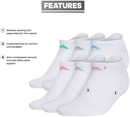 Women's Athletic Cushioned 6-Pack No Show, Socks - No Show Socks for Secure Fit, Cushioned Comfort, Low Profile