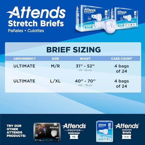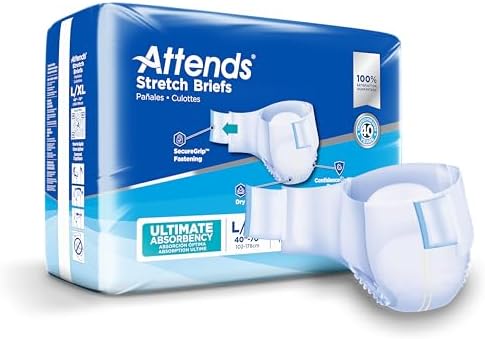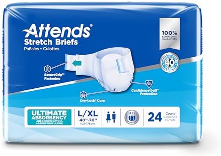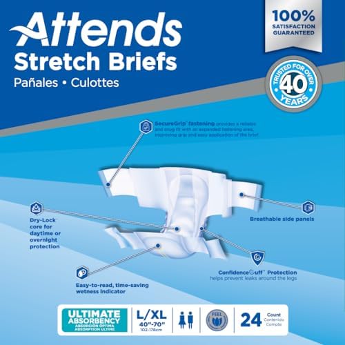 Stretch Adult Incontinence Disposable Briefs, Large/X-Large, 40"-70" Waist with SecureGrip Tab Closure, Ultimate Absorbency with Dry-Lock Containment Core and Breathable Side Panels, 24ct Bag