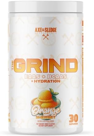 Axe & Sledge The Grind Essential Amino Acids |EAA & BCAA Powder |Muscle Recovery & Electrolytes for Hydration | Stimulant-Free, Vegan | 30 Servings, Orange Sherbet