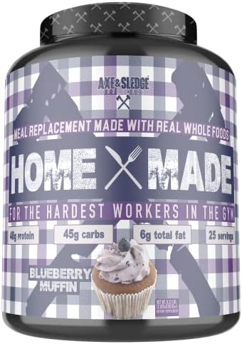 Axe & Sledge Supplements Home Made Whole-Foods-Based Meal Replacement Powder with Digestive Enzymes, Protein, Carbohydrates, and Fats, 25 Servings, Blueberry Muffin