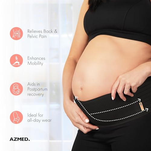 AZMED Maternity Belt Back Support - Adjustable Abdominal Binder for Pregnancy - Belly Band for Pelvic, Waist & Lower Back Comfort - Fits Up to 46 Inches - Black