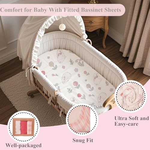 100% Jersey Cotton Bassinet Sheets 20"x33" Fits Baby Delight, Fodoss, Dream On Me Skylar and Most Rectangle Bedside Sleeper, Super Soft Breathable Fitted Sheets, 3 Pack, Pink