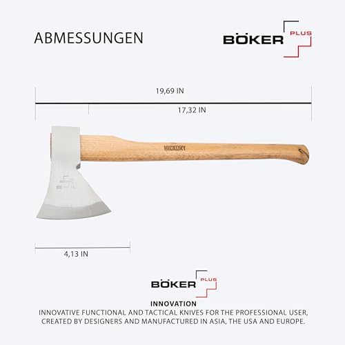 BÖKER PLUS® Appalachian Axe - Professional Bushcraft, Outdoor & Survival Axe - large carbon axe with hickory wood handle - professional camping axe with rhenish head 21.16 oz made of carbon steel 1055