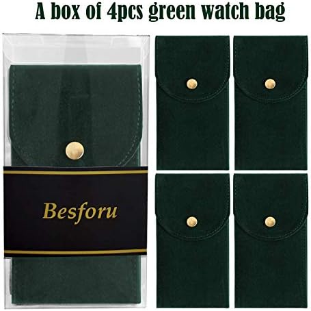 Besforu 4PCS Watch Travel Case for Men and Women Portable Velvet Watch Pouch Watch Storage Bag and Organizer (4-GREEN)