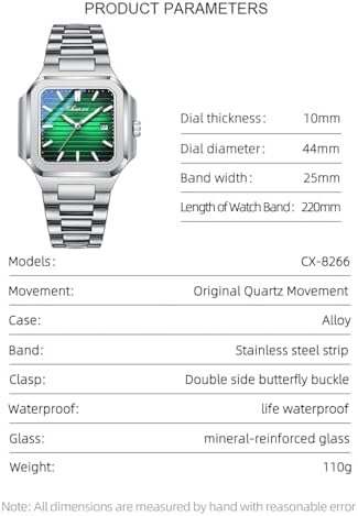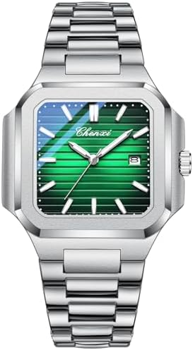 Sponsored Ad - Men's Classic Square Watch - Silver Stainless Steel Analog Quartz Dress Watch with Luminous Hands, Date Calendar, 30M Water Resistant for Business Casual