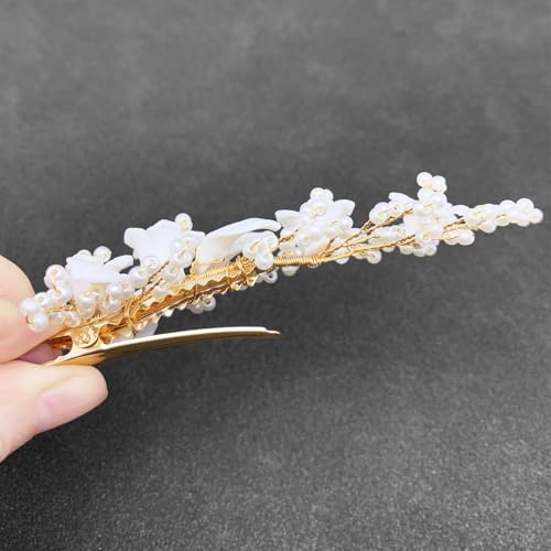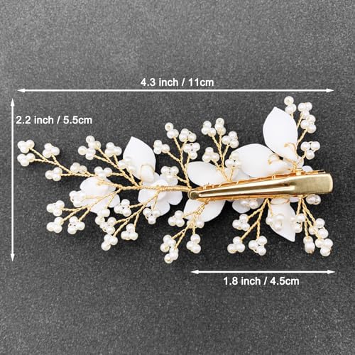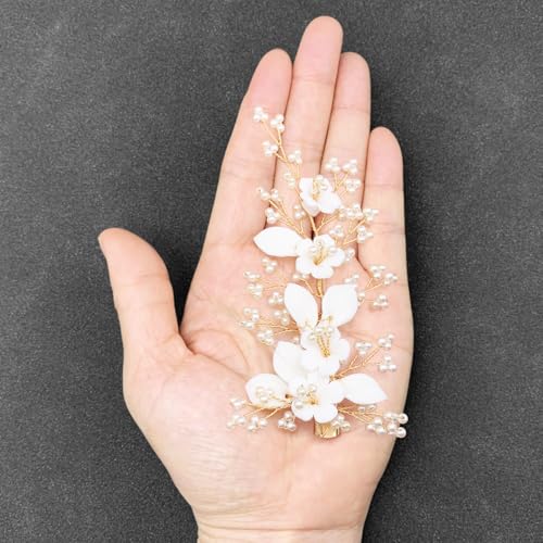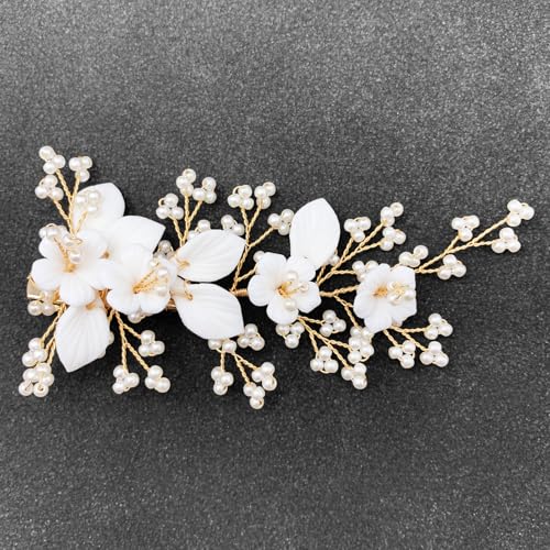 Sponsored Ad - BETITETO White Bridal Hair Clip Wedding Pearl Ceramic Flower Leaf Hair Piece Accessories for Women Girls