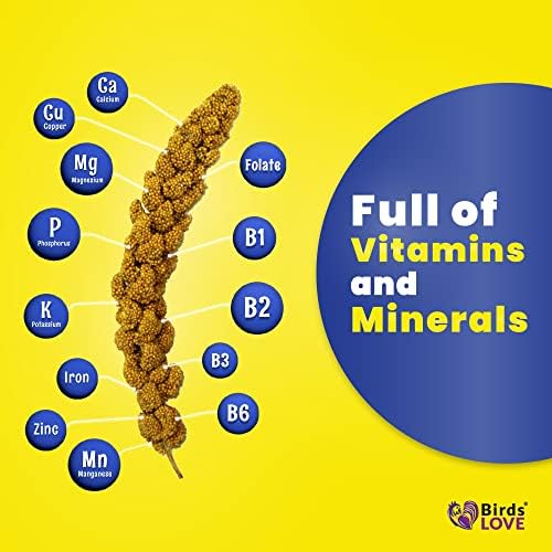 Birds LOVE Spray Millet – 9 oz GMO-Free, No Stems (Only Edible Tops) – Healthy Treat for Parakeets, Cockatiels, Finches, Canaries & Lovebirds