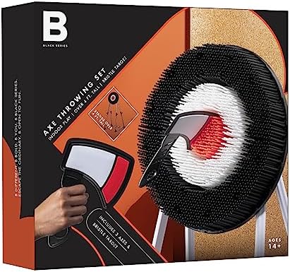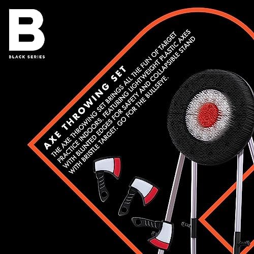 Black Series Axe Throwing Target Set, Includes 3 Axes & Bristle Target, Lightweight Plastic Axes with Blunted Edges, Safe for Indoor & Outdoor Use, Fun Party Activity Game