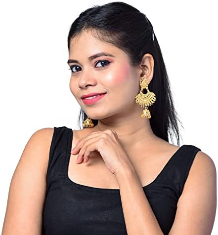 Sponsored Ad - Bodha Traditional Indian Handcrafted Gold Plated Designer Traditional Ethnic Chandbali Jhumka Earrings for Women (SJ_1949)