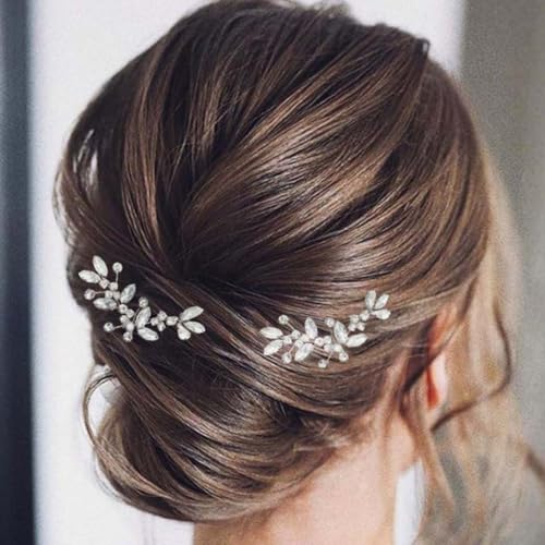 Casdre Crystal Bride Wedding Hair Pins Rhinestone Bridal Hair Pieces Wedding Hair Accessories for Women and Girls (Pack of 2) (A Silver)