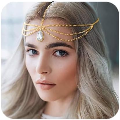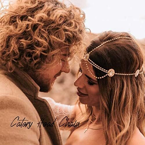 Catery Head Chain Jewelry Crystal Bohemia Hair Chain Bride Wedding Head Dress Rhinestone Headpiece Halloween Christmas Prom Hair Jewelry for Women