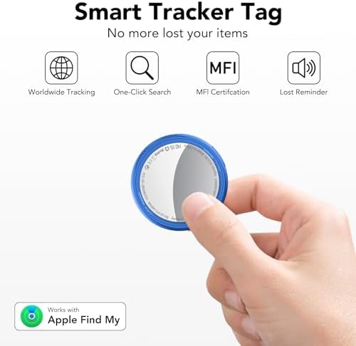 2025 New [Apple MFi Certified] (iOS Only) Air Tracker Tag-4 Pack, Bluetooth Tracker for Apple Find My, Replaceable Battery, Key Finder and Item Locator Smart Tag for Keys, Bags, Luggage, etc (Blue)